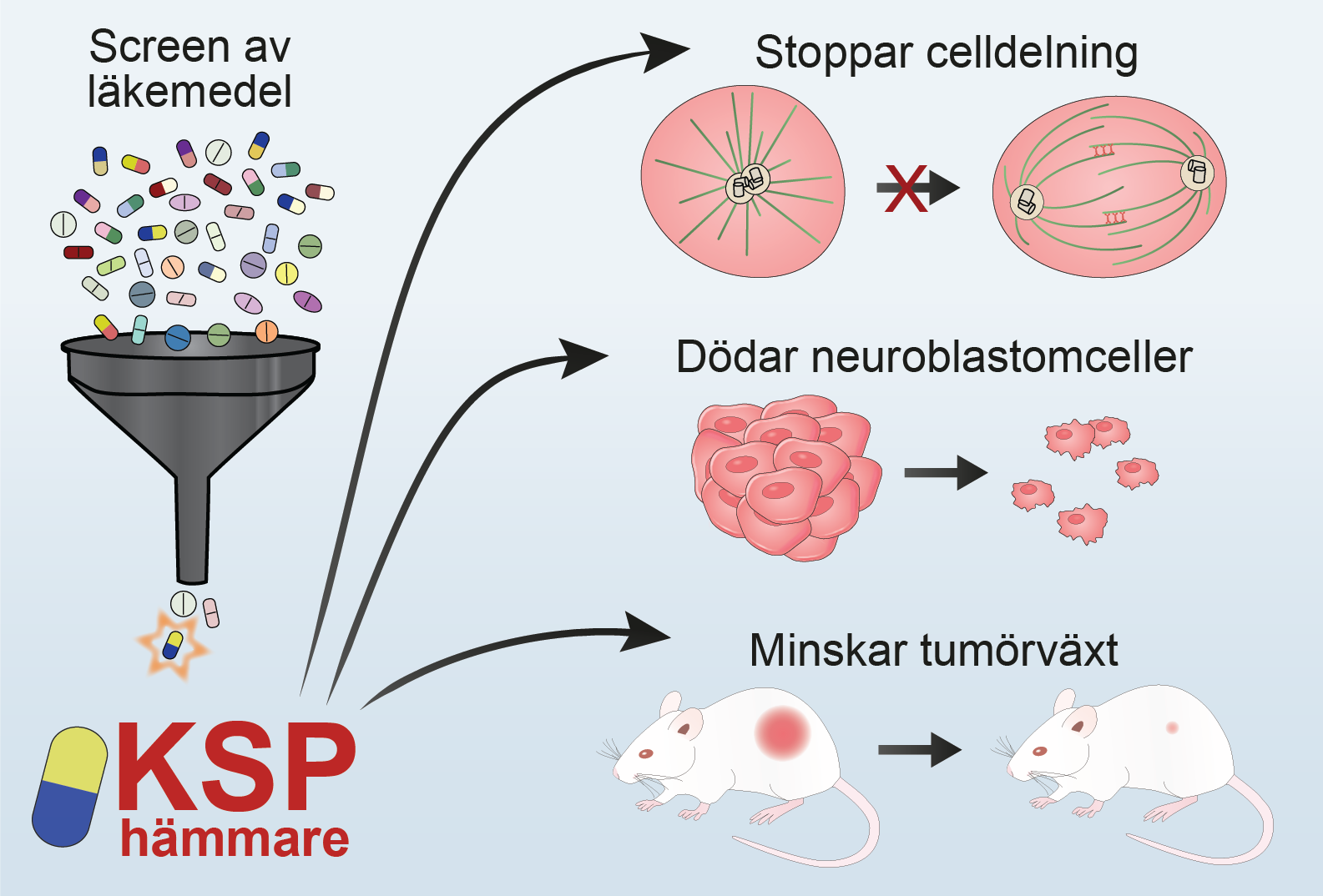 Det har visat sig att patienter med den aggressivare varianten av neuroblastom också har en hög andel KSP-protein. Läkemedlet som fungerade innehåller en så kallad KSP-hämmare som blockerar proteinet i tumörcellen och det medför att cellen inte längre kan dela sig och slutligen dör.