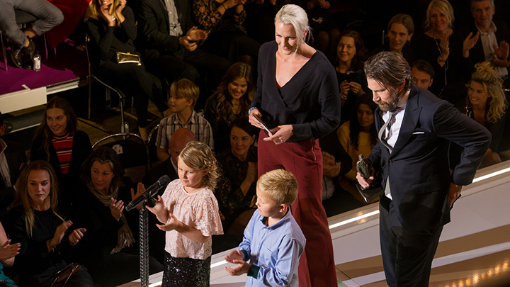Barnens pris delades ut av Sarah Sjöström och Peter Forsberg tillsammans med tidigare cancersjuka Nike och Mattias.