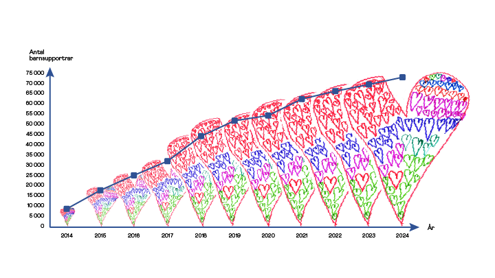 Från lanseringen i augusti 2014 och fram till sommaren 2015 fick Barncancerfonden 9 000 nya månadsgivare och bara ett år senare var antalet uppe i drygt 25 000. Idag har vi 73 425 fantastiska Barnsupportrar, men hoppas såklart på fler. För barn och cancer hör inte ihop.