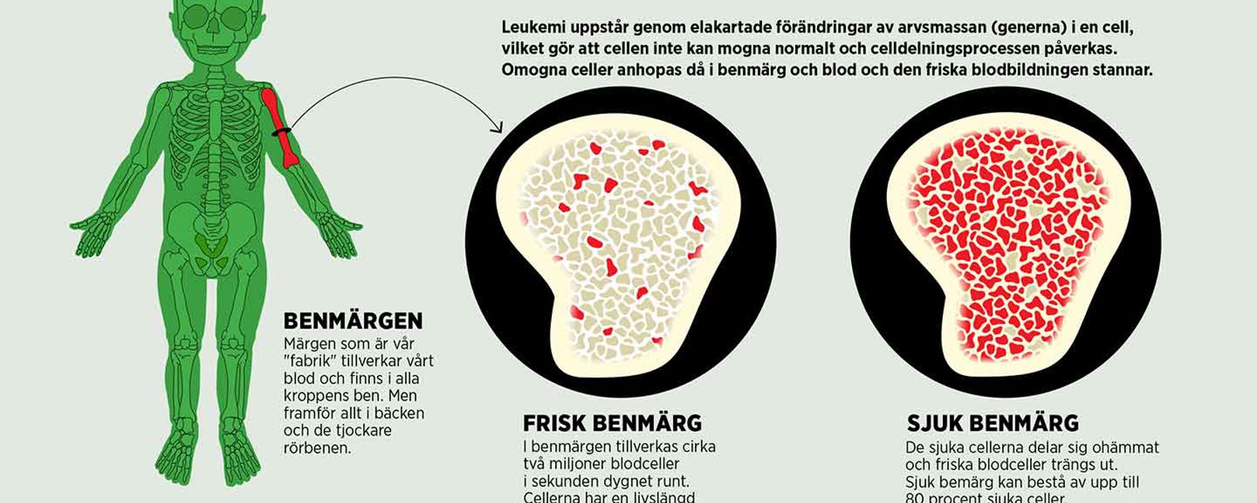 Leukemi karakteriseras av okontrollerad tillväxt av omogna förstadier till vita blodkroppar i benmärgen.