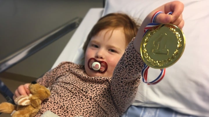 Hon lever i två parallella världar, där det numera är lika självklart att åka till sjukhuset och sövas ner för att ”åka säng” till magnetkameran som det är att vara matvärd på förskolan. Det är lika naturligt för henne att någon har långt hår som att någon annan inte har något hår alls. En del femåringar har halsband runt halsen och diadem i håret, andra har venportar inopererade under huden på bröstet.