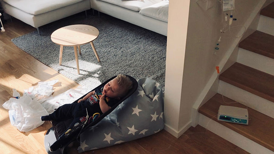 – För oss var det här perfekt, för det är en risk för oss ta med Hugo till sjukhus. Nu kunde han sitta kvar i sin babysitter och få sin cytostatika hemma, säger Pernilla Andreasson.