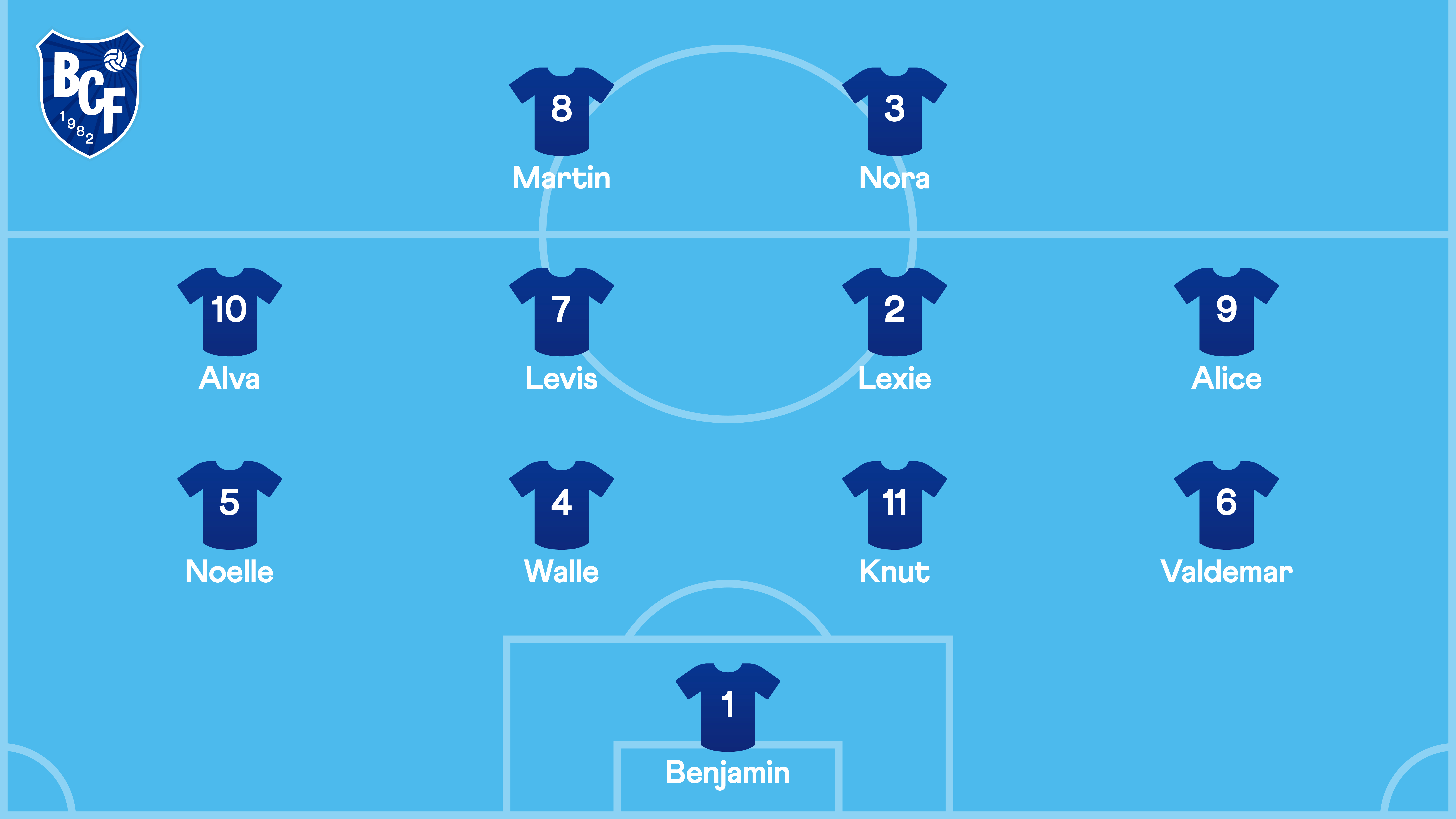 Barncancerfondens egna fotbollslag, BCF, bestod av elva barn. Alva, Benjamin, Levis, Noelle, Martin, Lexie, Alice, Valdemar, Nora, Walle och Knut.