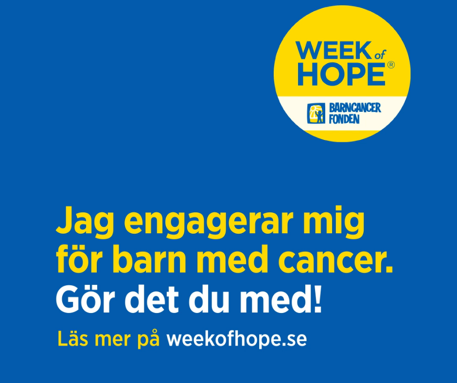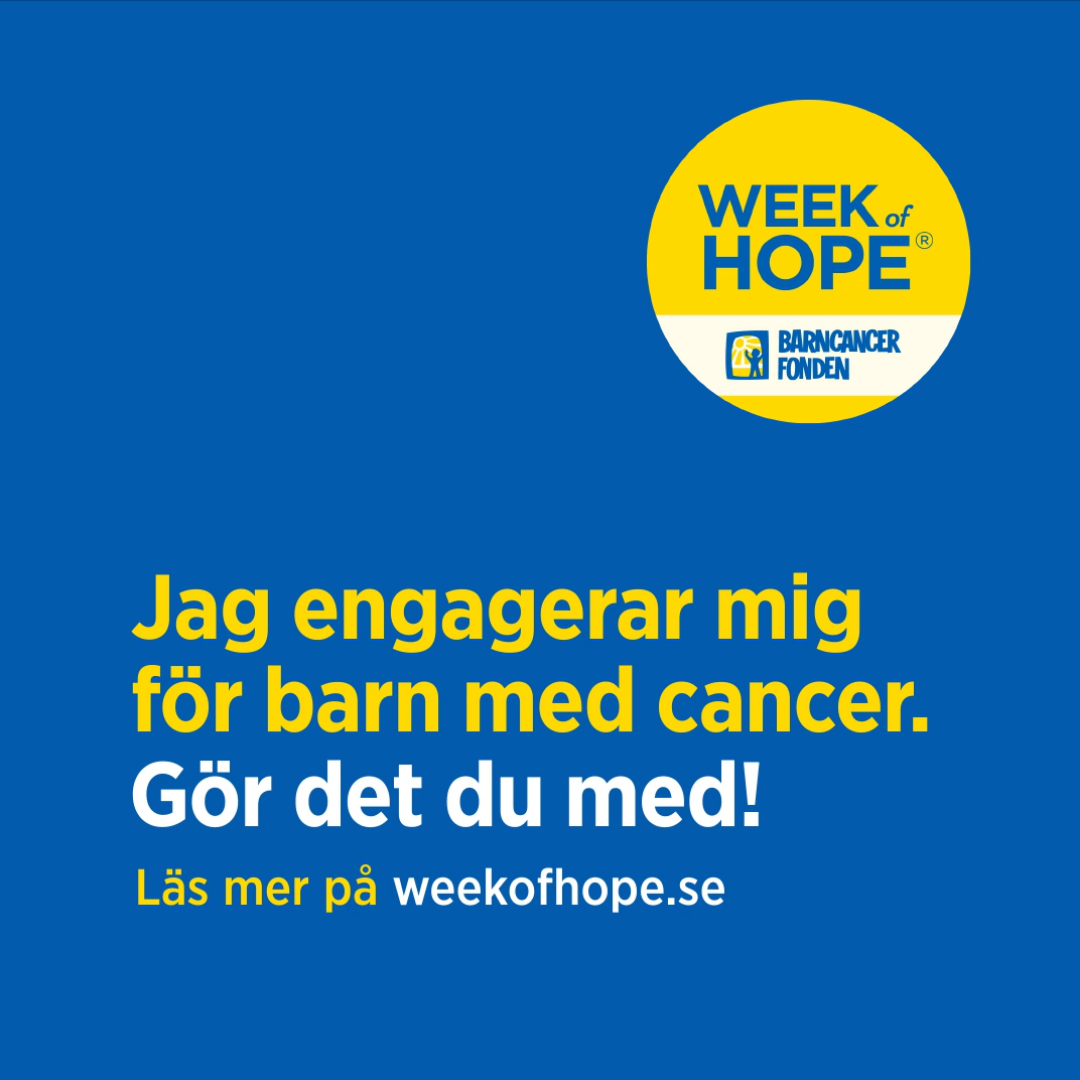 "Den 24 maj kommer jag arrangera Week of Hope i kampen mot barncancer. Jag kommer ha en digital matlagningskurs som alla är välkomna att anmäla sig till. Ta med vänner, familj eller kollegor! Anmäl dig till mitt event här: (länk till ditt event)"