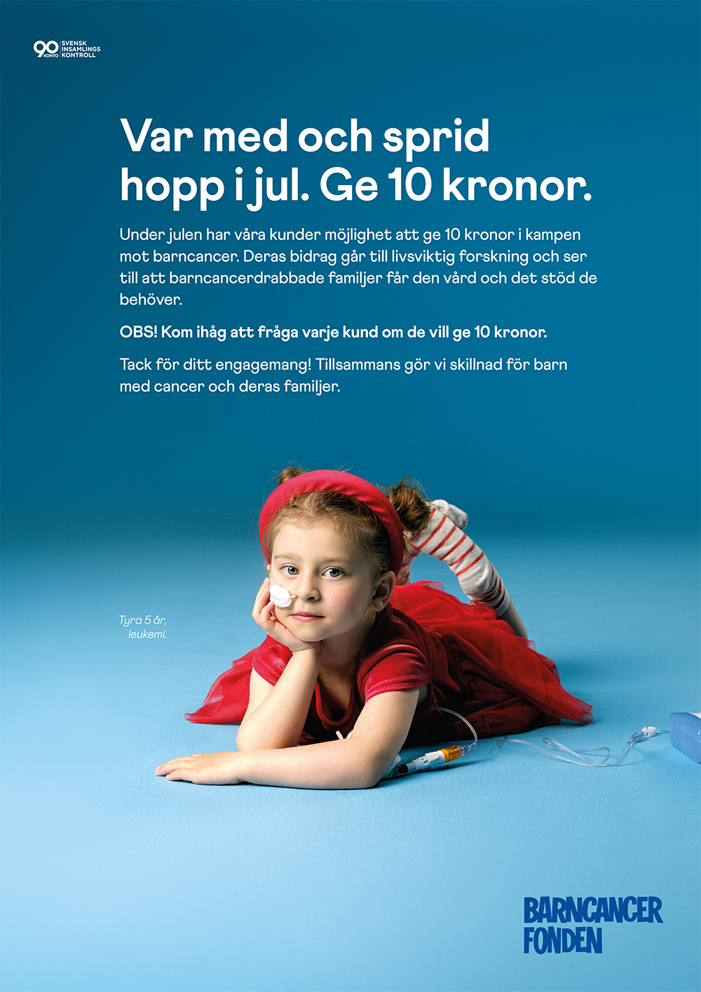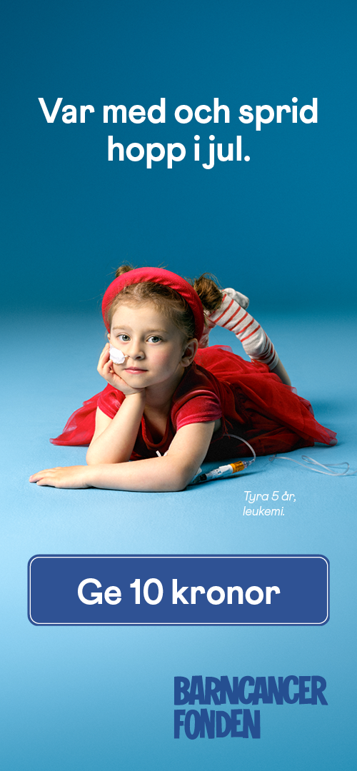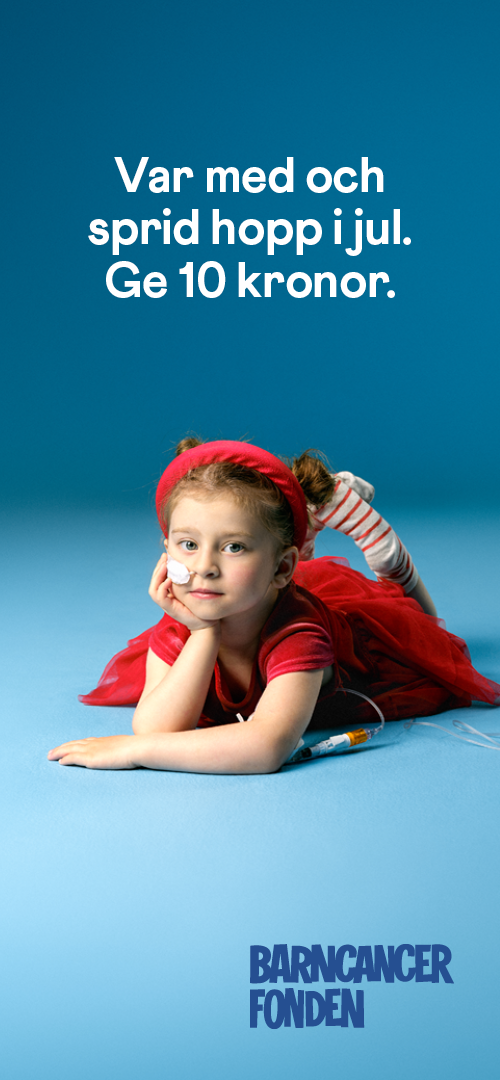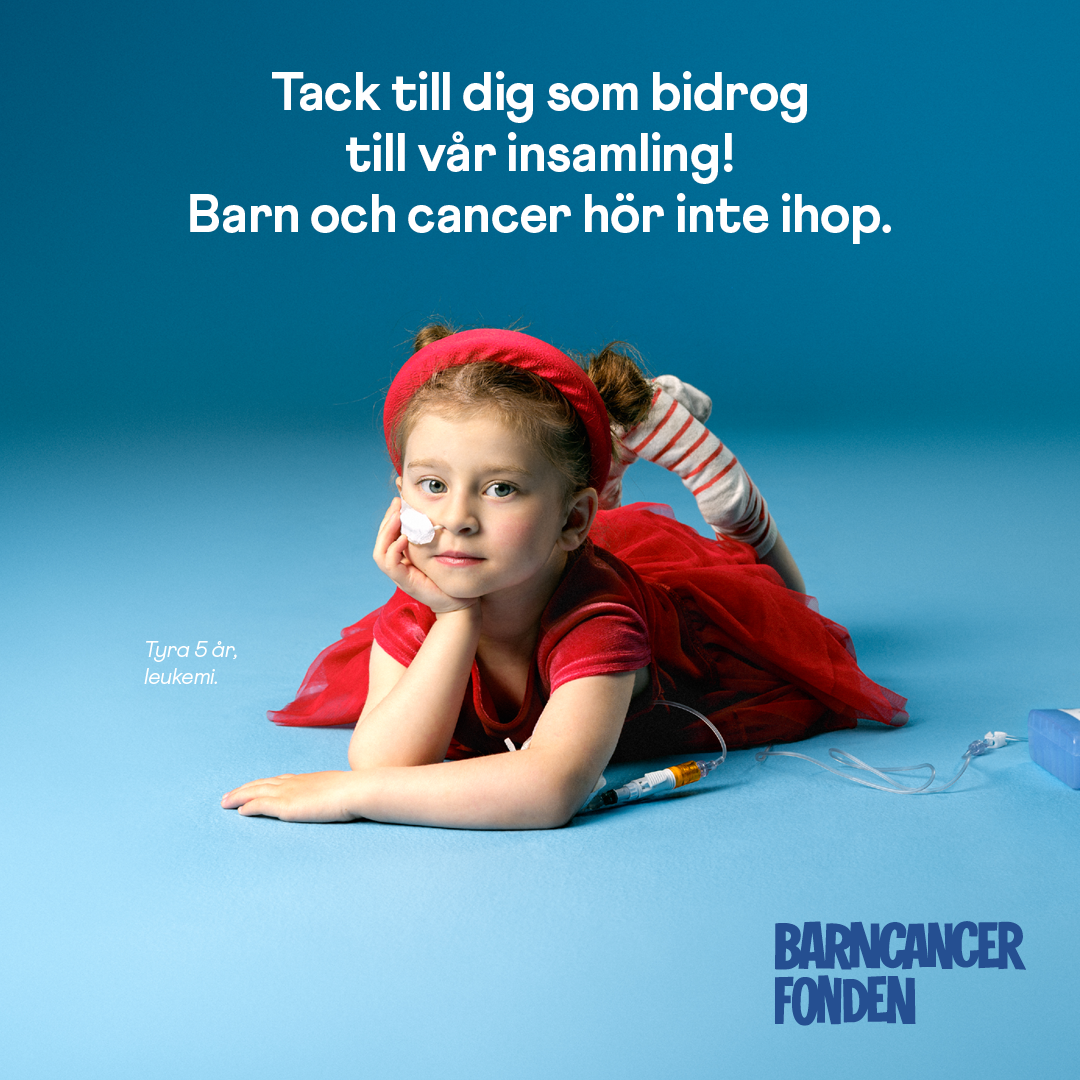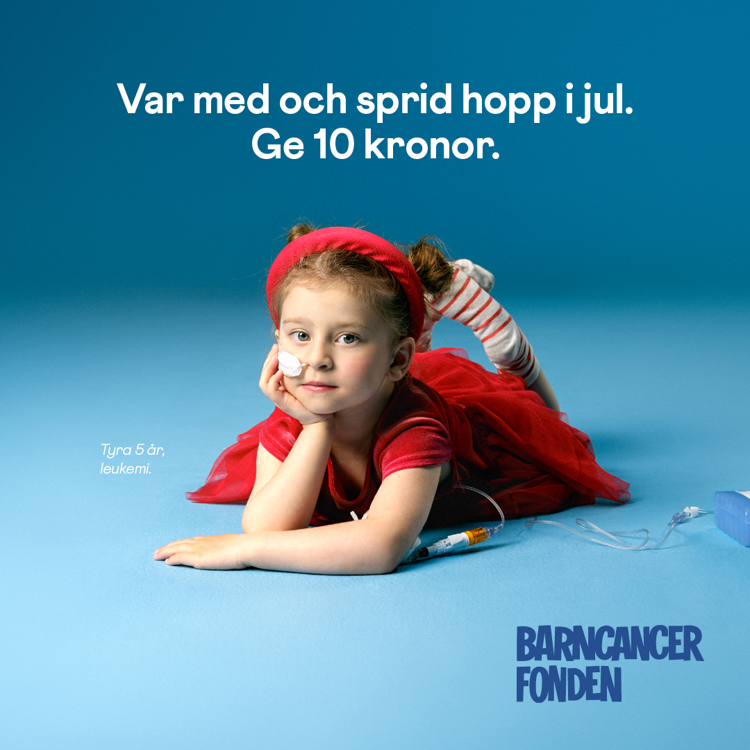 - Varje dag drabbas ett barn i Sverige av cancer. Men det finns hopp. Tack vare framgångsrik forskning överlever idag 85 procent av barnen som insjuknar. Och i jul är vi med och samlar in pengar så att ännu fler unga liv kan räddas. Var med du också - ge en tia nästa gång du handlar hos oss. Tack! Barn och cancer hör inte ihop.