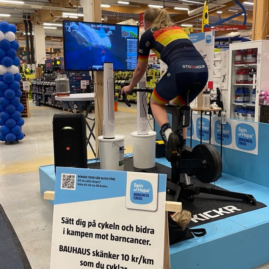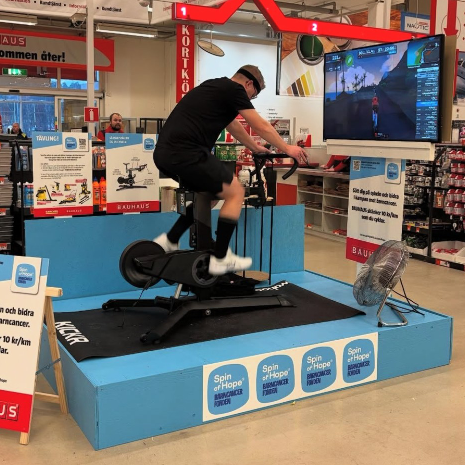 En av årets mest kraftfulla aktiveringar är Bauhaus roll som titelsponsor för Spin of Hope. Genom att sätta upp cykelriggar i sina varuhus bjöd Bauhaus i januari in både kunder och medarbetare att trampa för livet – bokstavligen. Det blev en energifylld start på året och en konkret manifestation av företagets engagemang.