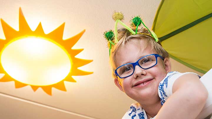 Jag har fått en synskada efter tumören. Med det ena ögat ser jag ganska bra, men om jag håller för det ser jag ingenting. Det är okej. Förut var jag på sjukhuset varje vecka, på fredagar, och fick medicin. Nu är jag bara där var tredje månad för röntgen. Jag var tre år när jag blev sjuk. Vi var i Thailand och när vi kom hem åkte vi till sjukhuset. Det är länge sedan. Jag kommer inte ihåg det.