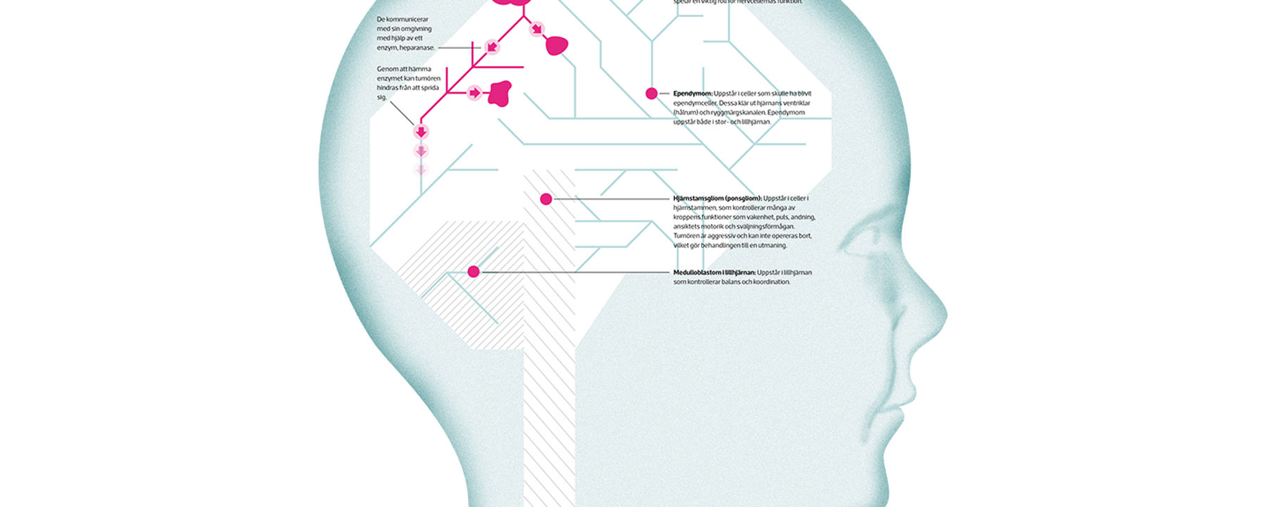 Karin Forsberg Nilsson har i många år forskat på cancerceller och stamceller, särskilt vid aggressiva hjärntumörer hos både barn och vuxna. Hon har fått ett anslag från Barncancerfonden för att studera vad ett enzym, heparanase, har för betydelse i elakartade och svårbehandlade hjärntumörers tillväxt.