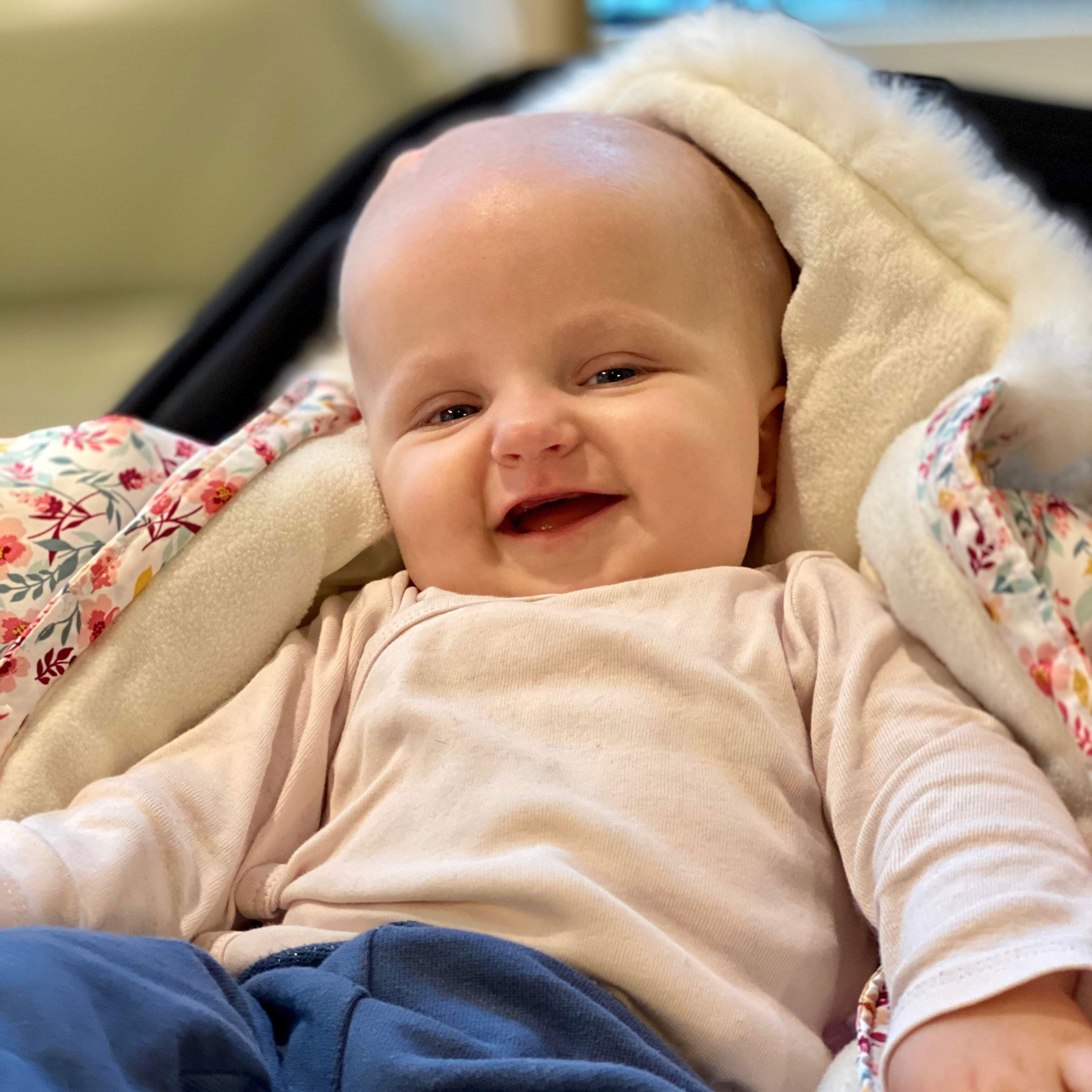 Tidigt på morgonen var hemsjukvården (SABH) hos oss för att koppla av TPN (droppet) och efter kalaset kom de för att sätta igång droppet igen. Då var hon kopplad till en ryggsäck hela tiden och pappa fick ge henne sprutor i benet för att boosta immunförsvaret.