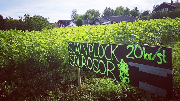 Under sommar och höst har jag varje dag på väg till och från jobbet kunnat följa ett härligt initiativ med solrosor till självplock, där intäkterna gick till oss i Mellansverige.