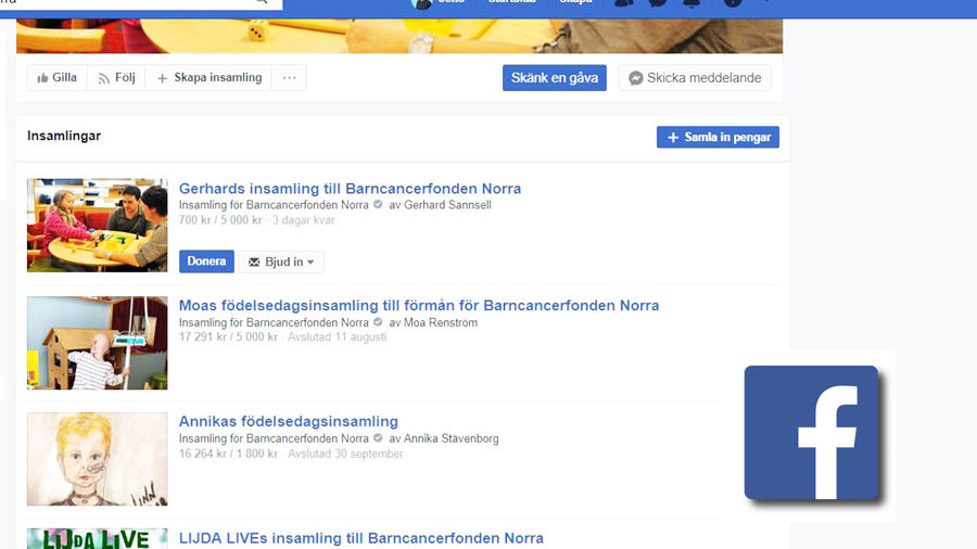 Nu kan du starta en egen insamling eller skänka pengar till Barncancerfonden Mellansverige direkt via Facebook.