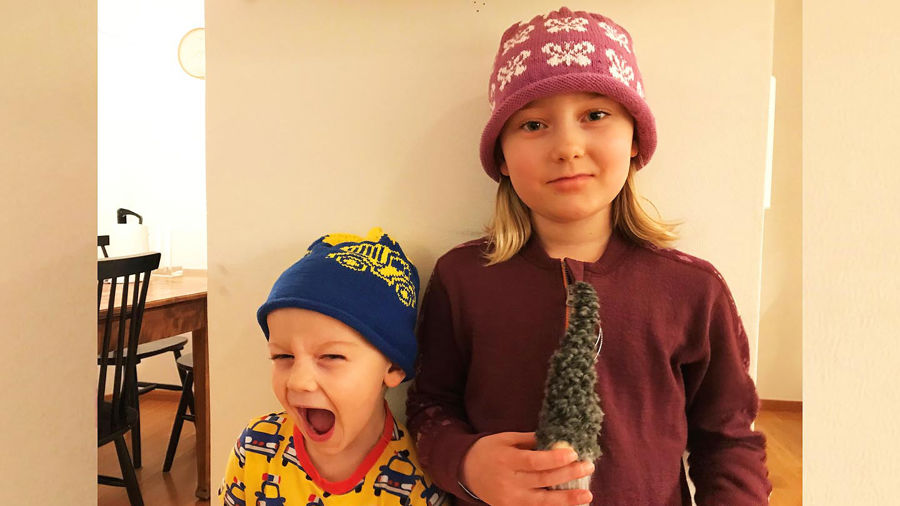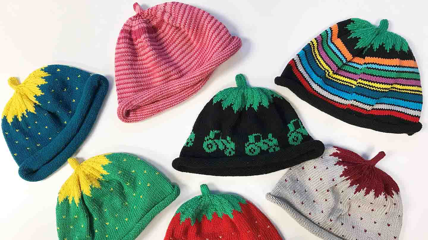 Finnes: Vackra och fantasifulla barnmössor med bl.a. bärmönster – skänkes av handarbetande "60-plus-tjej" i Enköping!