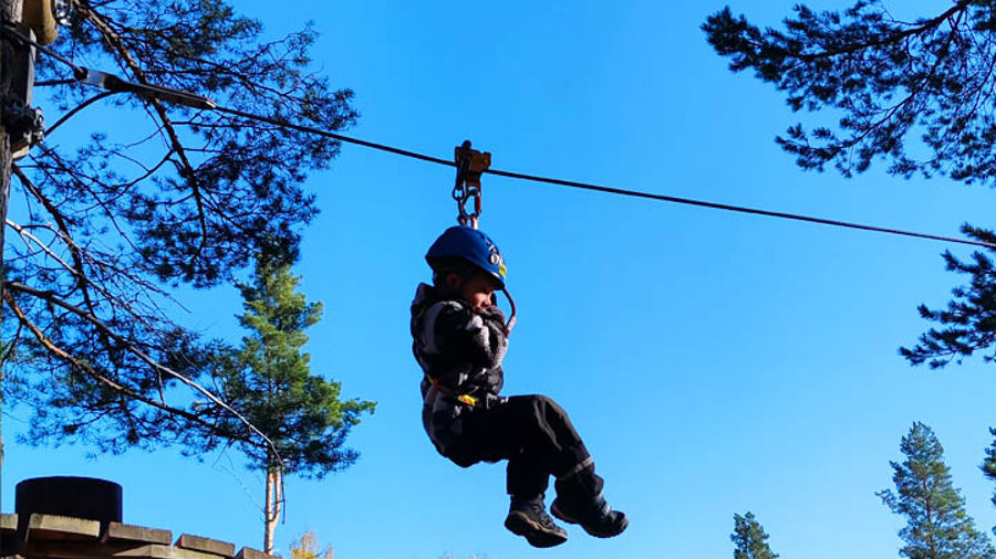 Tillsammans med Barncancerfonden Mellansverige besökte hela familjen i lördags Orbaden Zip & Climb. Vi har aldrig varit där, och familjetid är något som är efterlängtat här hemma. Tjejerna flög mellan trädtopparna i sicksack-banan och jag och Léon körde Wild Kids-banan. Jag var lite orolig att det skulle bli lite svårt och jobbigt för honom med balans och att benen inte skulle orka. Men det var ju inga problem, när han gått igenom alla banor ville han köra en gång till, och lunchen kunde han hoppa över. Själv gjorde jag den första banan med hjärtat i halsgropen, så det var ju tur att Léon efter det ville köra banorna utan mamma, och att det fanns andra vuxna som kunde hjälpa honom med krokarna ibland.