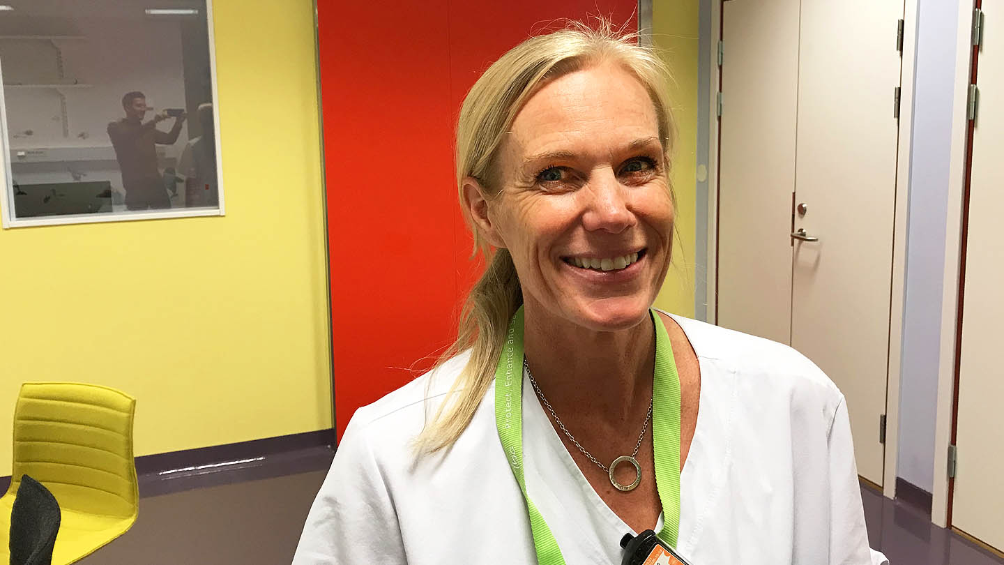 Ulrika Kronberg är onkologisjuksköterska på Skandionkliniken och tar emot i det mötes- och samtalsrum där protonmodulen är placerad.