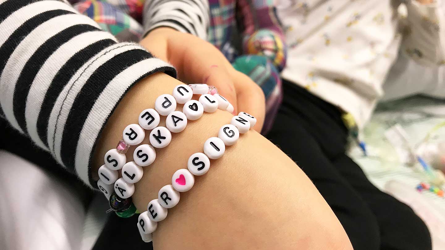 – För mig handlade det här med att pärla armband faktiskt om en slags terapi. Jag fick något annat att tänka på i stunden helt enkelt. Och det kändes också naturligt för mig eftersom jag redan från början bestämde mig för att ”bita ihop” och göra något konkret för att orka kämpa. Och jag hade heller inget val. När de runtomkring oss frågar vad de kan göra, svarar jag ofta: Pärla!