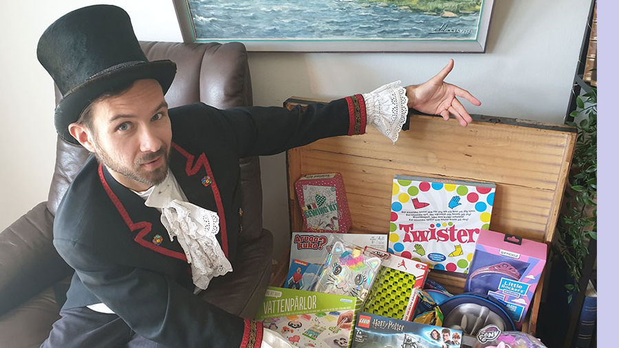 Nu erbjuder vi alla barn under behandling, samt deras syskon, möjlighet att träffa den uppskattade karaktären Jacob Balabrega, för att spela på hans lyckohjul via t.ex. FaceTime eller Facebook Messenger. Den magiska tidsmaskinsposten skickar sedan hem vinsterna direkt till din brevlåda.