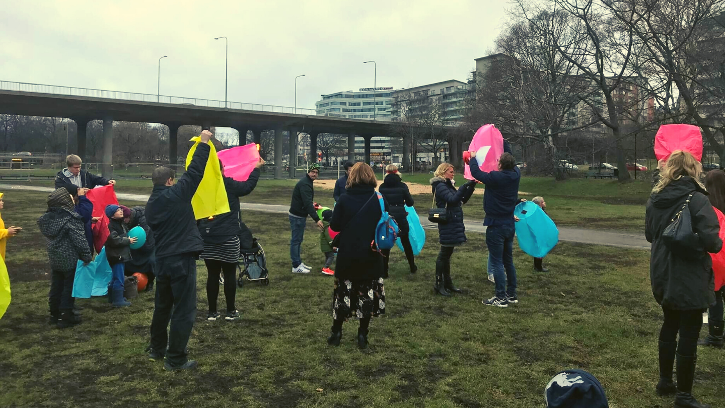 Efter brunchen gick vi tillsammans ut i Rålambshovsparken och släppte upp färgglada rislyktor som hade skänkts från Partypack. Det blev en fartfyllt och väldigt rolig aktivitet där vi kämpade mot blåsten för att få iväg lyktorna som tillslut begav sig in mot staden.