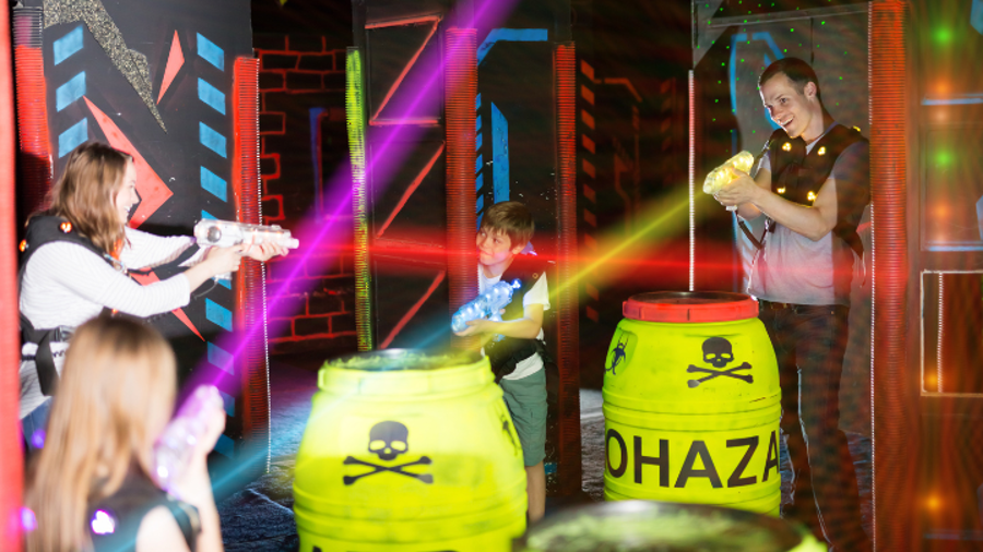 Med sensorförsedda västar på kroppen och futuristiska laservapen i händerna jagar vi varandra genom mörka gångar, uppför ramper och över hinder. Det finns inte ett dataspel i världen som kan framkalla den här adrenalinruschen....
