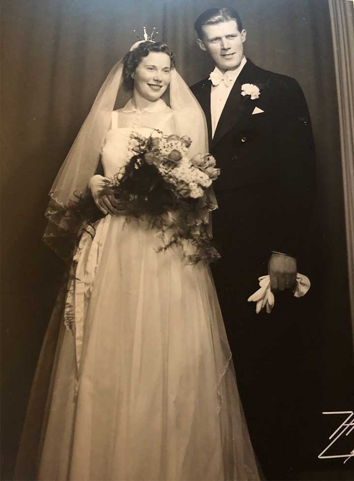 Där på Ulleråker jobbade även Aina. Hon var köksbiträde och det var där paret träffades. De gifte sig 1952 och levde ett aktivt liv tillsammans med resor, skidsemestrar och somrar i stugan i gamla Uppsala.