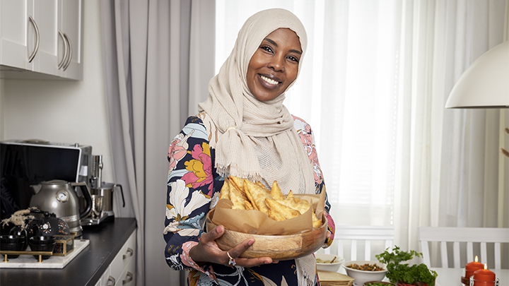 De östafrikanska degknytena är perfekta. Gyllenbruna och glansigt frasiga. Köket i fyrarumslägenheten i Göteborgsförorten Angered doftar av spiskummin, chili och koriander.