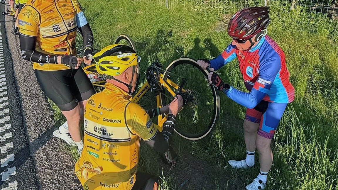 Förutom nyss nämnda fina gemenskap är det när vi stod där utefter vägen tidigt på lördagsmorgonen och för tredje gången på kort tid lagade punktering, det har aldrig hänt förut.