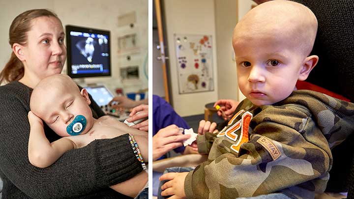 – Eddie har alltid varit rätt så pigg under sin behandling, men vid vissa tillfällen var han lite dåligare. Han fick mycket febertoppar på 40 graders feber, och det tog på krafterna. Han var väldigt dålig på att äta under hela tiden och det var något av det jobbigaste – att se sitt barn bara bli mindre och mindre. Till slut var det bara skinn och ben av honom och han vägde runt 9 kg, säger Johanna.
