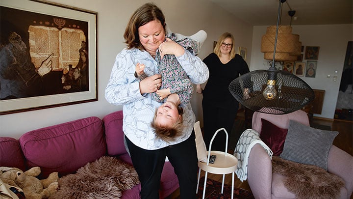Det har gått 1,5 år sedan Elin blev sjuk. Vi sitter och pratar i Vikingsbergsparken, ett stenkast från familjens lägenhet i centrala Helsingborg. Vårsolen glittrar över Öresund. Storebror Gabriel kollar sin mobil medan Elin leker i sandlådan. Bortifrån gungorna hojtar lillebror Melwin att mamma ska putta på hans gunga.