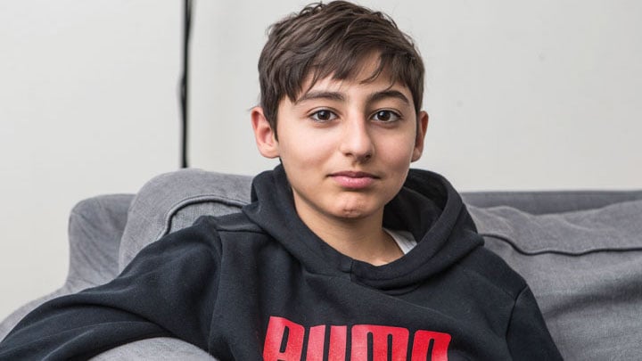 Han var 10 år när han fick ont i benet och ryggen. Det tog fyra månader för läkarna att hitta en förklaring. Tumören, som satt nära ryggraden, mätte 12 centimeter i diameter när de hittade den.