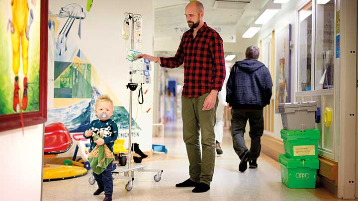 Familjen har gjort sig hemmastadd på avdelning 62 på Hallands sjukhus i Halmstad. Vincent har diagnosen akut lymfatisk leukemi (ALL) och cytostatikabehandlingarna har blivit en del av vardagen. En gång var åttonde vecka installerar sig Paul Jagestrand och SofiaSamuelsson tillsammans med sonen i ett rum på vårdavdelningen.