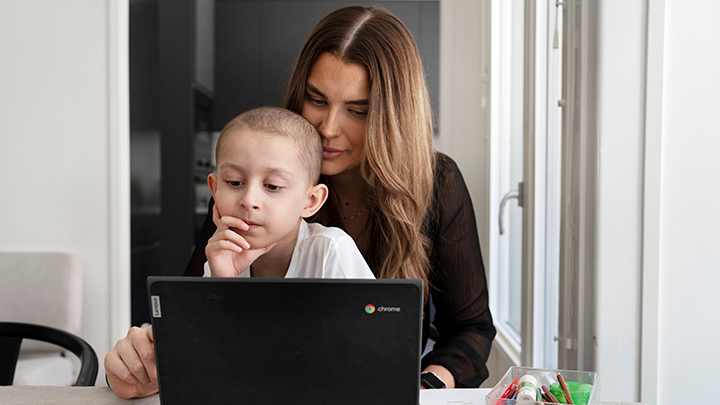 - Lärarna har verkligen varit lyhörda och kommit med idéer för att underlätta för Matheo, berättar Dimitris. Och barnen i hans klass har varit väldigt omtänksamma. När de får se att han ska delta, om det så är digitalt eller fysiskt, blir de superglada. Och det smittar av sig på honom, för då känner han sig välkommen.
