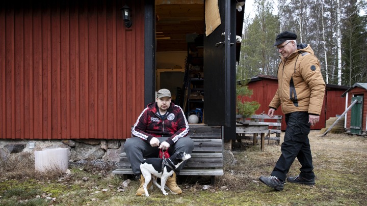 På soffbordet ligger en diger hög med papper. Det är pappa Roger som har hållit ordning på allt som har med Jonas situation att göra, ända sedan sjukdomen för snart 30 år sedan. 2023, efter att i många år ha försökt med olika typer av praktikplatser, sommarjobb och insatser från kommunen ansökte Jonas, med hjälp av pappa Roger, om att få hel sjukersättning. Trots att Jonas läkare slagit fast att han inte kunde arbeta, beslutade Försäkringskassan i december 2023 om avslag.