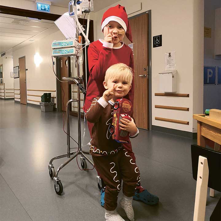 Det var när hela familjen hade klätt upp sig för att åka på nyårsfirande som Elis fick våldsamt näsblod och feber och återigen hamnade i rummet på avdelning Barn 3. För hela familjen kändes det tryggast när Elis var på sjukhuset, där all hjälp fanns inom räckhåll.