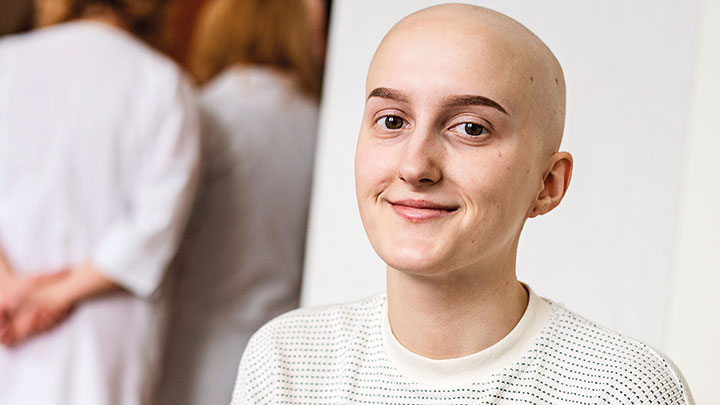 En av salarna delar Dovile, som ska fylla 18, och Evija som är 15. Båda lider av Ewing sarkom. Evija ligger och sover, hennes kind mot kudden är svullen och huden gulaktig.
