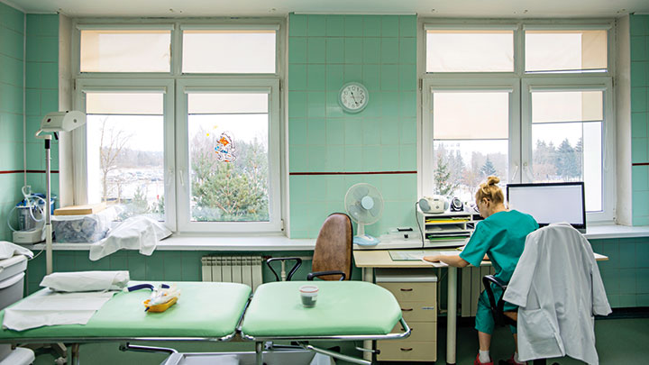 Sovjettiden var också hård. Det rådde brist på material, och slutenheten ledde till brist på inflöde av nya idéer och forskningsfynd. Delar av sjukhuset byggdes under den tiden, slitna trappsteg leder upp till vårdavdelningen, medan de nybyggda salarna är ljusa och personalens stora stolthet.