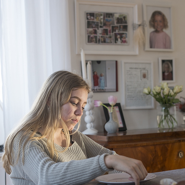 Hedda Rosendahl, 16 år, saknar sin syster Elsa varje dag. Det vardagliga där både värme och bråk ryms. På flera ställen i huset finns det saker som påminner om henne. En bok, en teckning och den lilla byrån med pysselsaker som står i en bokhylla. Familjen flyttade hit en månad innan Elsa drabbades av en aggressiv hjärnstamstumör. Efter sju månader dog hon i sina föräldrars sovrum med hunden Rutan bredvid sig.