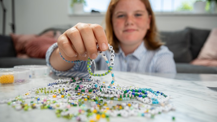 När elvaåriga Molly Liljestrand fick veta att fotbollskompisen Ebba drabbats av leukemi började hon pärla armband för att visa sitt stöd. – Just nu kan jag inte forska om cancer, men jag kan samla in pengar till de som kan.