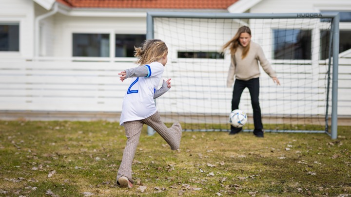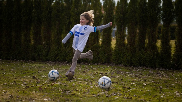 För Lexie innebär fotbollen att hon får ha kul tillsammans med sina kompisar. Nu när hon mår bra igen finns det gott om energi för att även spela med syrran på familjens gräsmatta. Självklart iklädd den vita fotbollströjan med nummer 2 på ryggen, beviset på att hon nu ingår i Barncancerfondens eget fotbollslag.