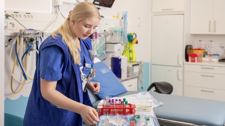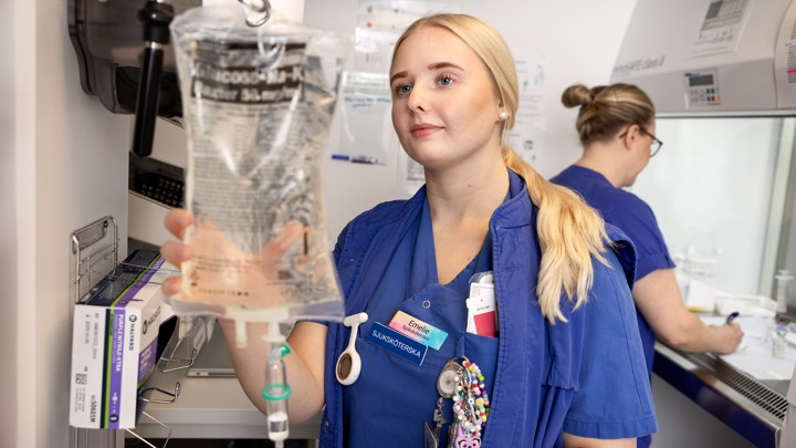 – Som sjuksköterska här har man många olika uppgifter och är lite som "spindeln i nätet". Det kan vara allt från att ge olika mediciner som till exempel antibiotika eller ”guldmedicin” (cytostatika). Nästa dag gör man kanske provtagningar, pre- och postoperativ vård eller förmedlar kontakt mellan olika professioner.