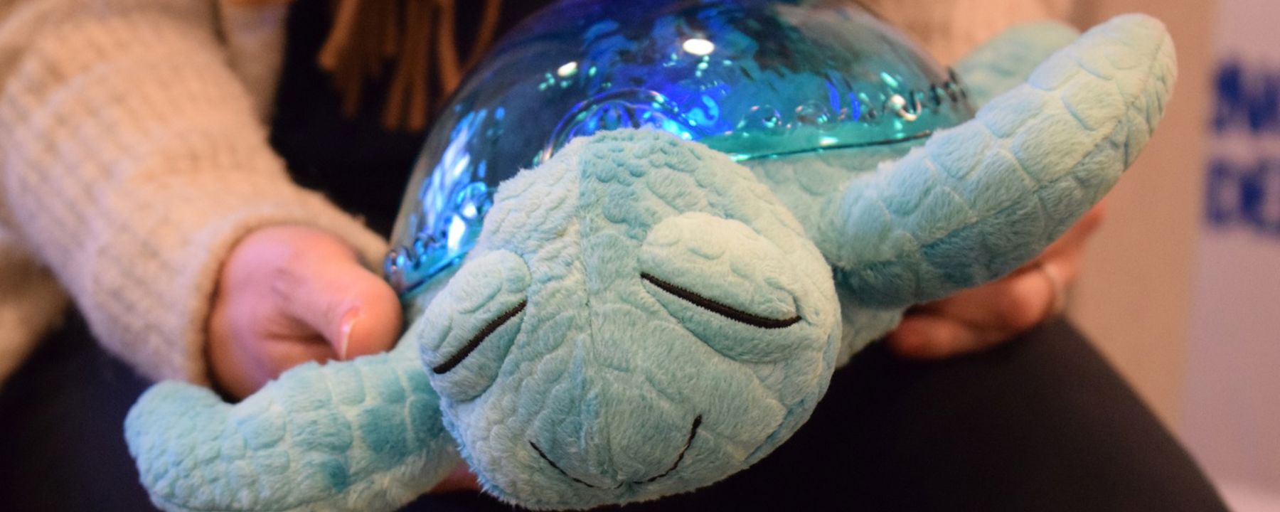 Den är söt och har ett lite sömnigt uttryck. Sköldpaddan Tranquil Turtle beskrivs som en nattlampa men är mycket mer än så. Dess hårda skal ger ett blåaktigt behagligt ljus som liknar upplevelsen av att befinna sig under vatten och den kan spela ett lugnade vågbrus eller ett stillsamt avslappningsljud. De avkopplande egenskaperna har god inverkan på de flesta men har visats sig vara extra värdefulla för barn som drabbats av och behandlats för hjärntumör.