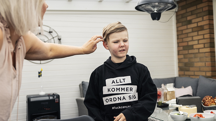 – Det var då du sa ”mamma, det bästa som har hänt är att jag har fått cancer så jag fått träffa Theoz”, minns du, säger Therese till Vilgot.