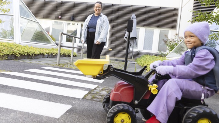 – Jag har jobbat i 28 år och sett så många föräldrarna springa runt med droppställningen efter sitt barn som cyklar iväg på en trehjuling i korridorerna här. Den här västen betyder så mycket både för barnen själva – och för föräldrarna, säger Marita Vikström Larsson.