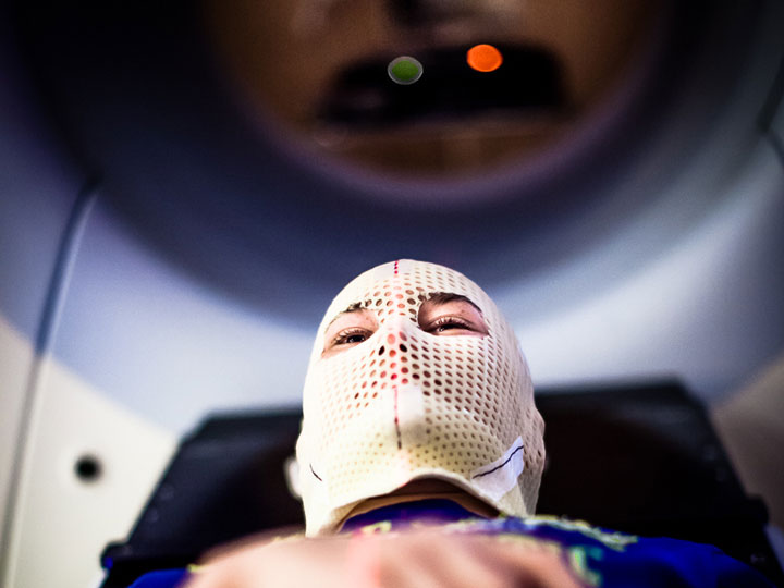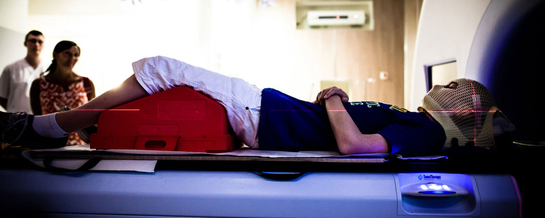 De rester som finns kvar i Williams hjärna ska strålningen jaga bort. Han ska få 25 behandlingar vid strålbehandlingsenheten vid Universitets-sjukhuset i Lund. Vi träffar William i mitten av juli – på hans näst sista behandling. Det är varmt. Sommaren har verkligen gjort sitt intrång och i stället för att åka till stranden med kompisarna cyklar William till sjukhuset med Lena och Thomas. I väntrummet, som är ljust och luftigt, väntar både barn, unga och äldre. William har sin tid strax före lunch. En sjuksköterska och en sjukhusfysiker hjälper William i behandlingsrummet. Mamma och pappa väntar utanför. De spänner fast en strålningsmask.