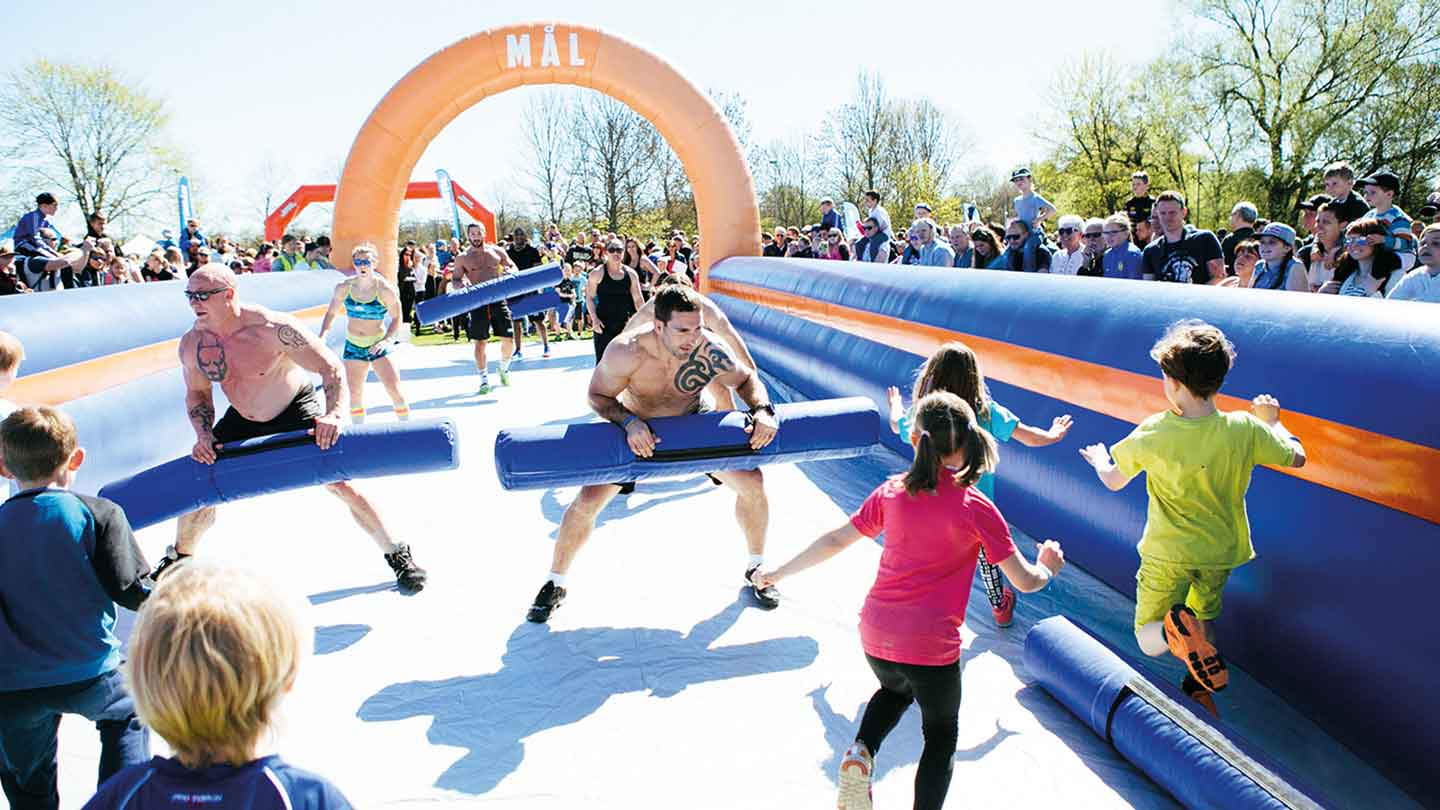 Gladiatorer utmanar barn för insamling Barnen får klättra över väggar och kämpa mot gladiatorerna ... skänker 100 000 kronor till Barncancerfonden och uppmanar dem som anmäler sig att lägga till