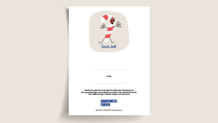 Gåvobevis: God jul-polkagris Önska släkt och vänner en extra god jul! ... lilla polkagrisen stödjer du livsviktig forskning, sprider extra ljus och värme, samt hjälper
