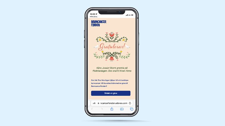 Grattis-sms Med den här fina grattishälsningen kan du uppvakta någon som fyller ... se ut för mottagaren. Stöd kampen mot barncancer samtidigt som du skickar en hyllning