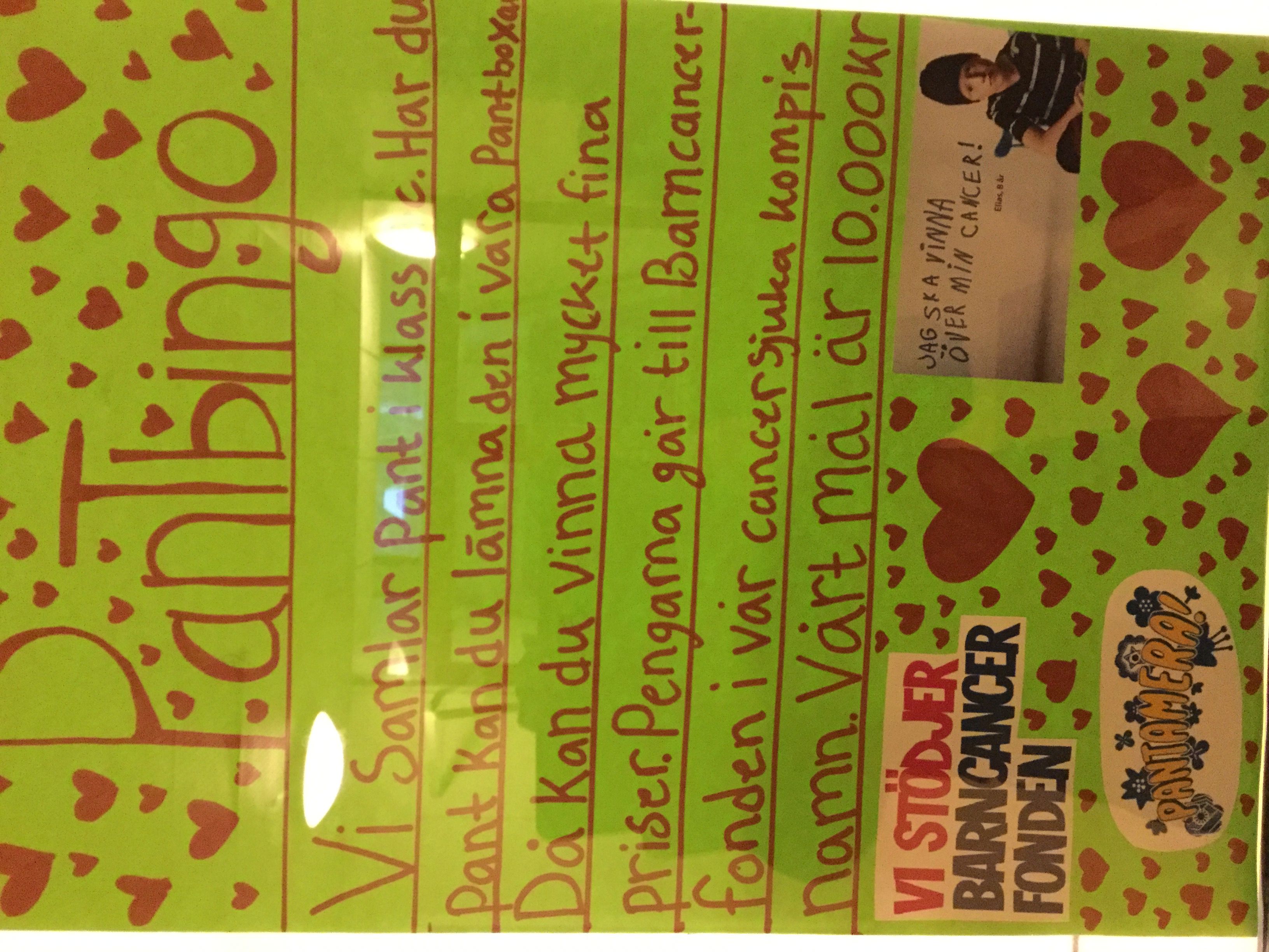 Vi i klass 6C på Nytorpsskolan, Göteborg, har startat en insamling till förmån för miljön. Syftet är att vi genom insamling av pantpengar samt att vi ska ha loppmarknad där vi säljer begagnade saker; samlar in pengar till Barncancerfonden. Vårt mål är att vi ska få in ca 10.000 kr innan den 30 maj 2018. Vi hoppas på att så många som möjligt kan bidra, allra helst att pengarna som doneras in kommer in miljövänligt, dvs genom pantning eller att man sålt något av sina begagnade saker. På så vis hoppas vi på att kunna värna om miljön samtidigt som vi bidrar med pengar till Barncancerfonden. Precis som det står på bilden, vill vi kämpa för framtiden. Vi barn är framtiden och därför ska även vi kämpa för att barncancer en dag försvinner. Många kramar från oss elever!